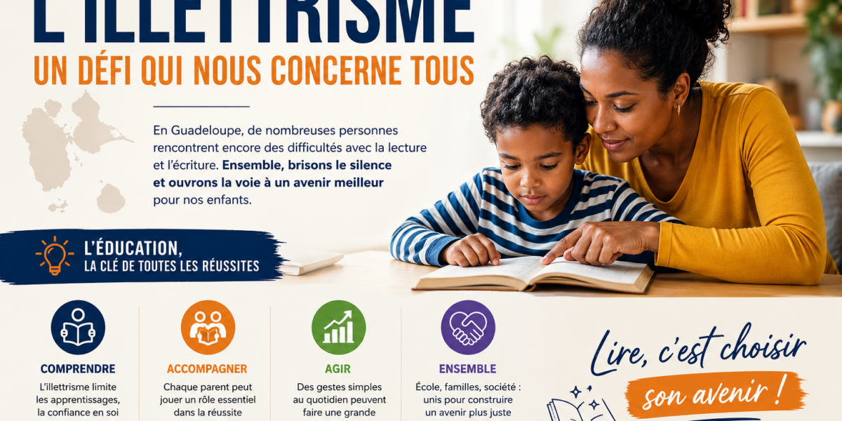 En effet, selon l’INSEE et les données relayées par France-Antilles, une part importante de la population adulte rencontre des difficultés avec la lecture et l’écriture. Autrement dit, l’illettrisme ne disparaît pas avec l’école : il s’installe et se transmet parfois de génération en génération.